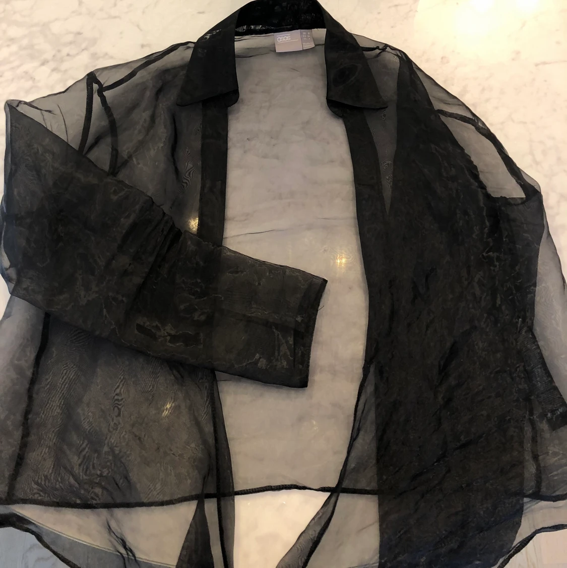 Lätt genomskinlig svart topp från ASOS, knappt använd☀️ jättefin till fest över en annan top eller fin bralette, går att knyta