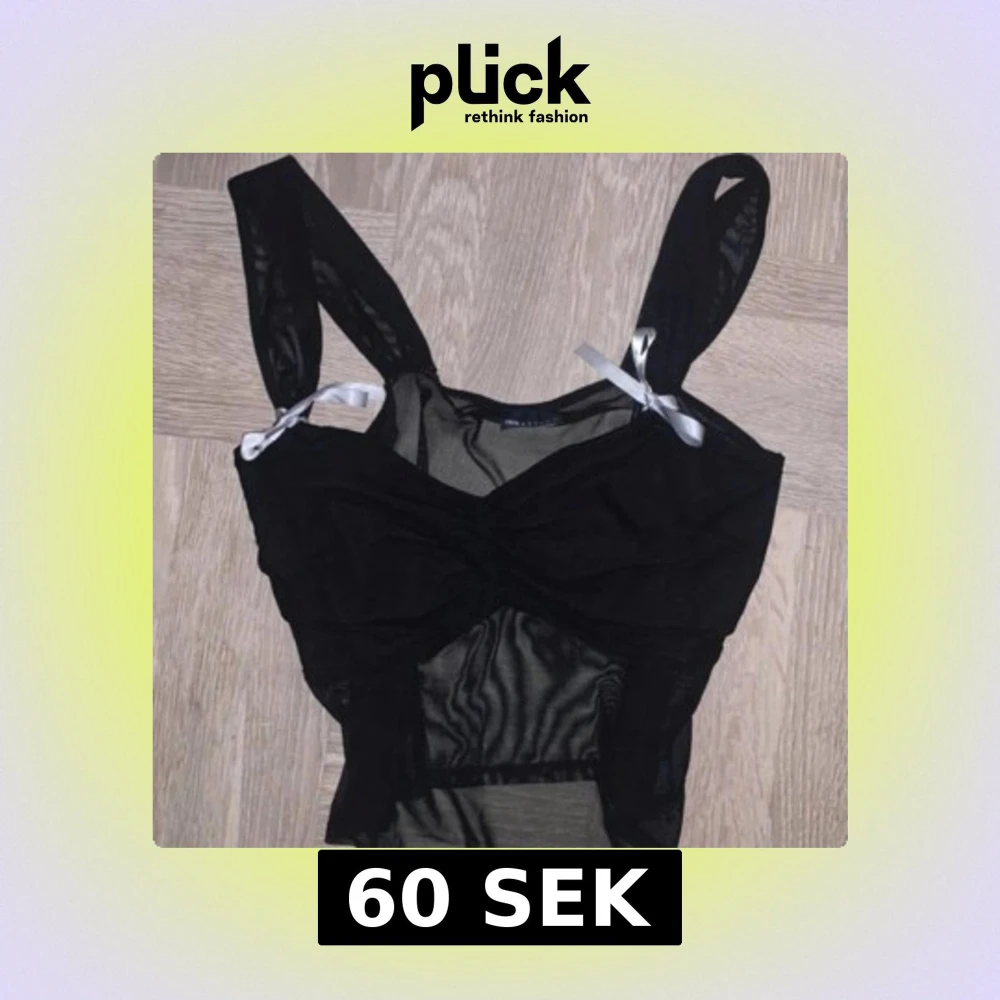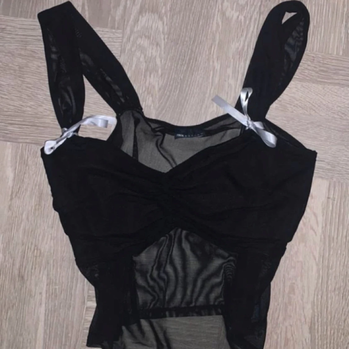 Snygg svart korsettopp i mesh med knytband på axlarna. Perfekt för en kväll ute eller när du vill känna dig extra speciell. Toppen har en åtsittande passform och en stilren design.