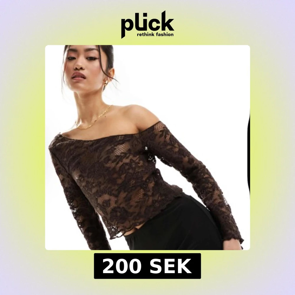 Elegant brun offshoulder spetstopp från Asos. Storlek s.