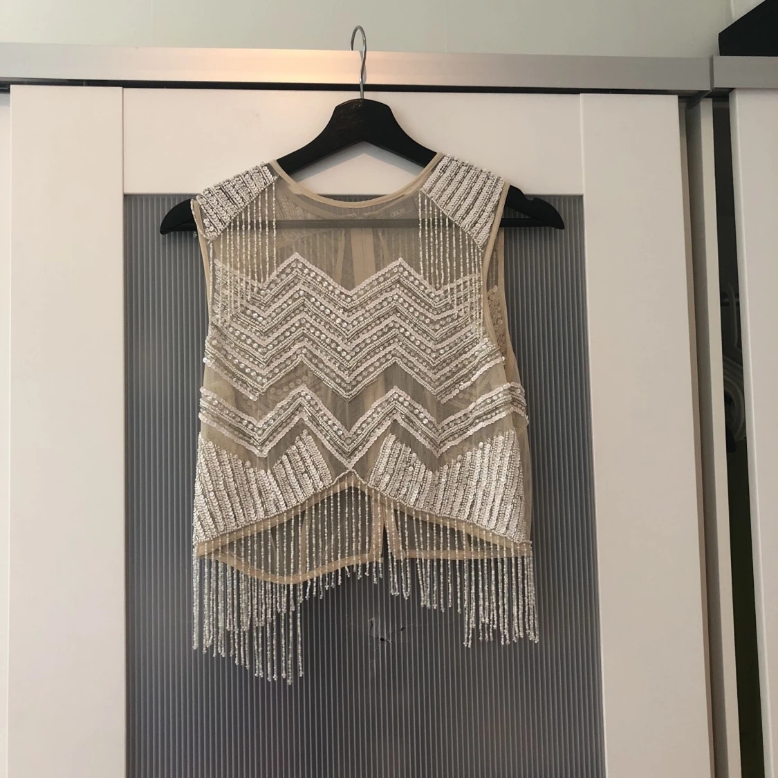 Ascool partytopp från ASOS. Använd en gång. Broderat beiged meshtyg med vita och silvriga paljetter och pärlor.