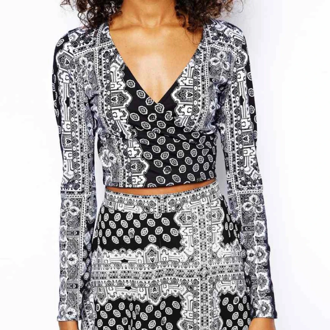 Så snygg mönstrad långärmad croptop i svart och vitt från ASOS. Aldrig använd med tags kvar!