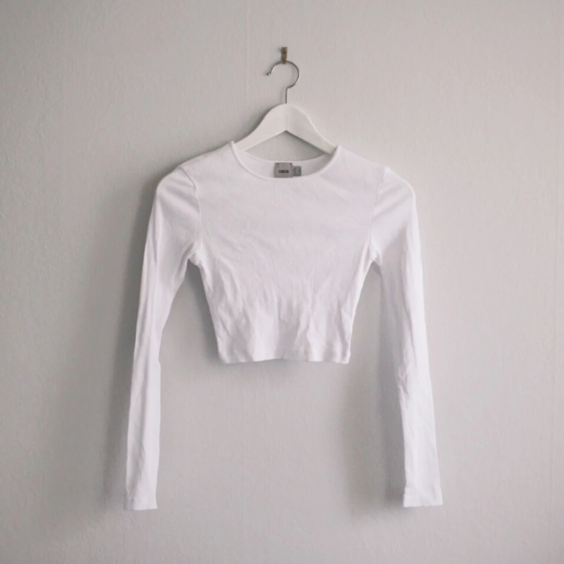 Vit, ribbad magtröja med långa ärmar från ASOS. Fraktkostnad 26 kr.