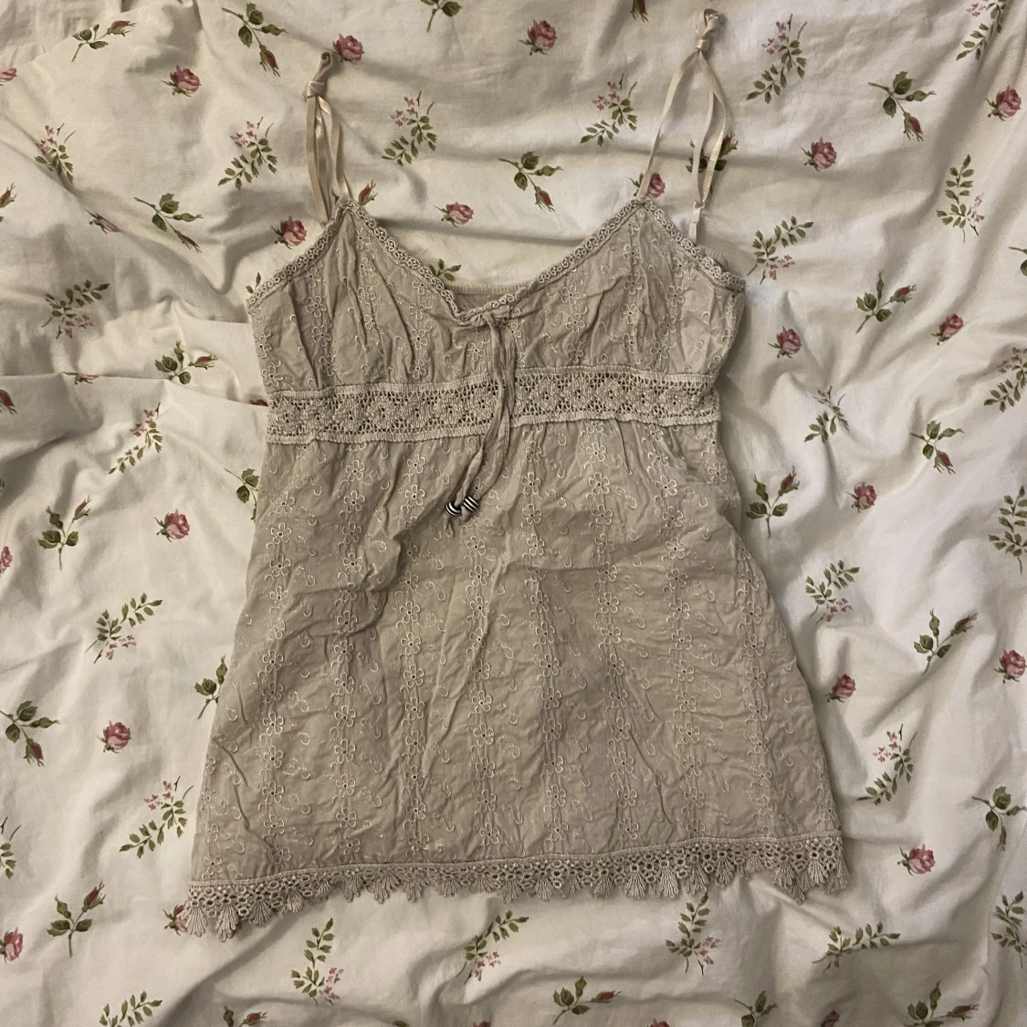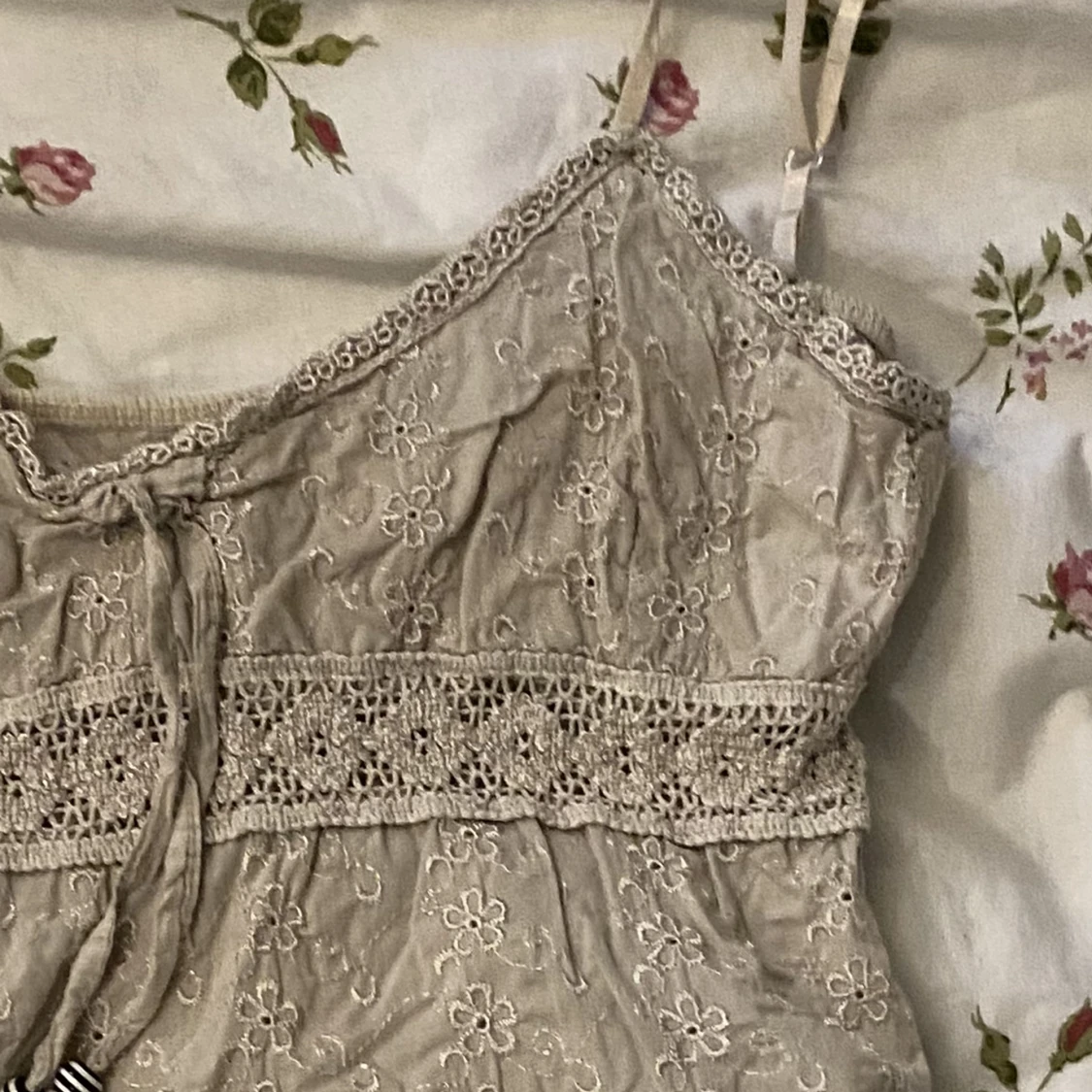 Det är en 90/2000-tals topp med typ ett fint blommigt mönster (kan se på bild 3) köpt second hand men aldrig använt då den är för stor, skriv vid fler frågor 💕