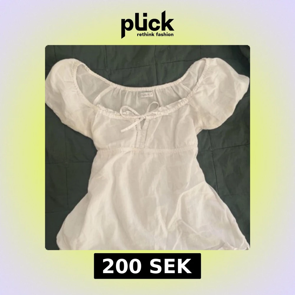 Söt vit blus från Cubus med puffiga korta ärmar och knytband framtill vid bysten. Den har en feminin och romantisk look med resår i midjan och vid halsringningen. Passar S, står XS på lappen
