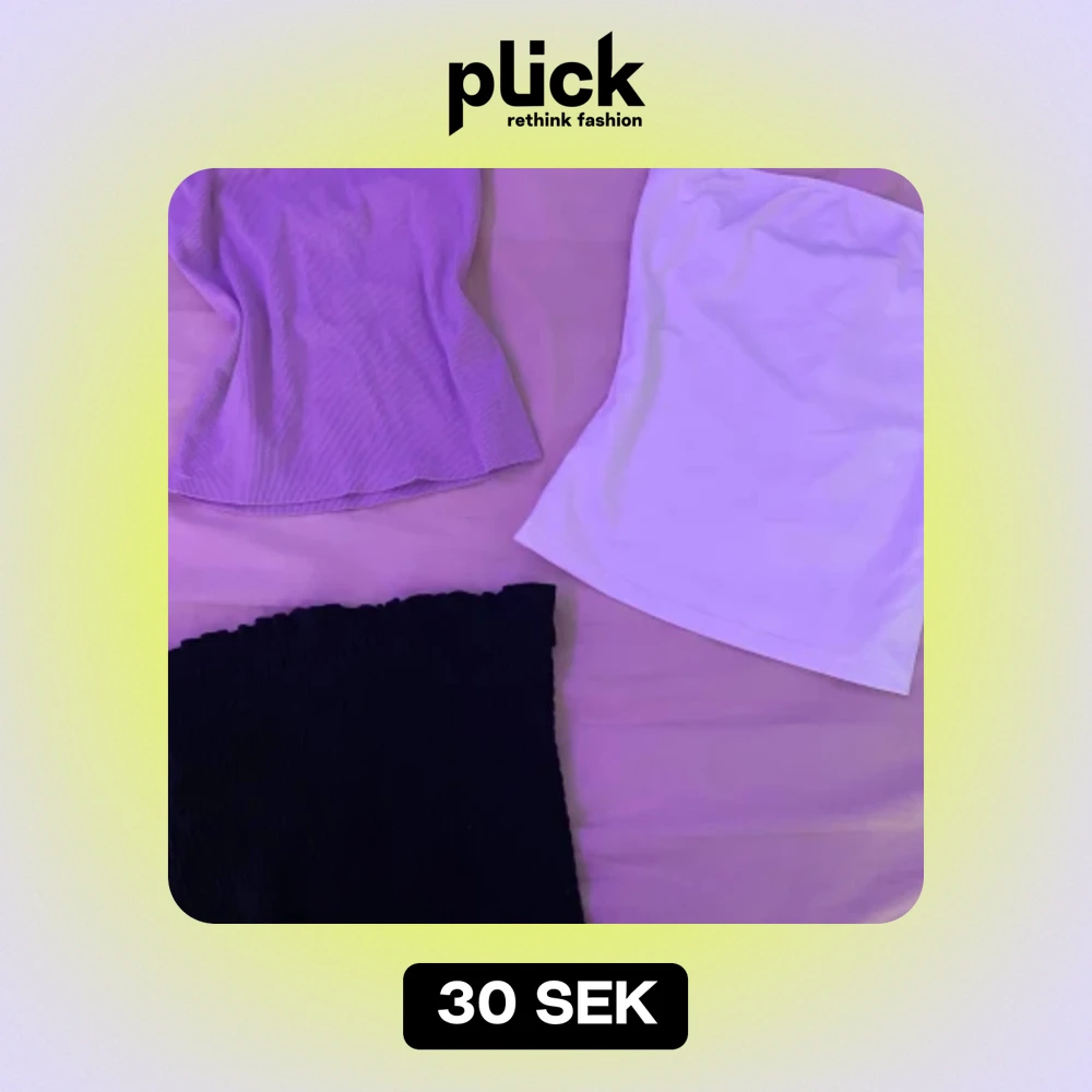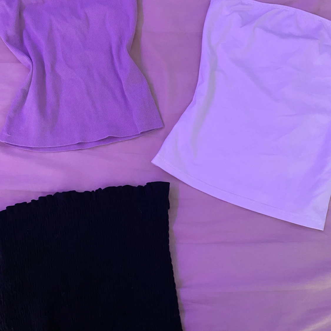 3 stycken jätteeeefina bandåtoppar perfekt till ett par lågmidjade jenas❤️den svarta från hm (ribbad) den vita från shein och den ljuslila från gina alla i xs och fint skick!!