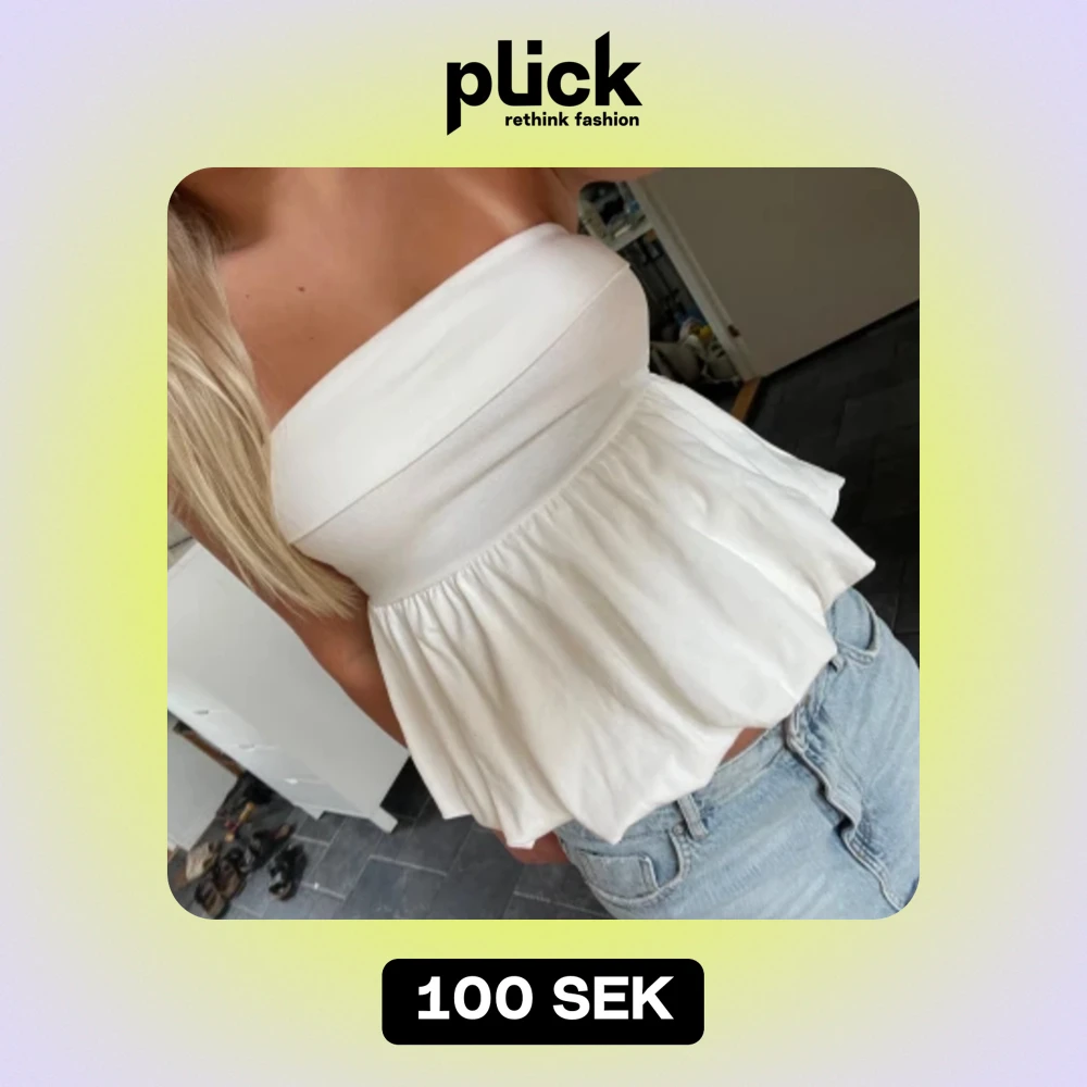 Snygg tröja utan band med volang nertill, aldrig använd endast testad!