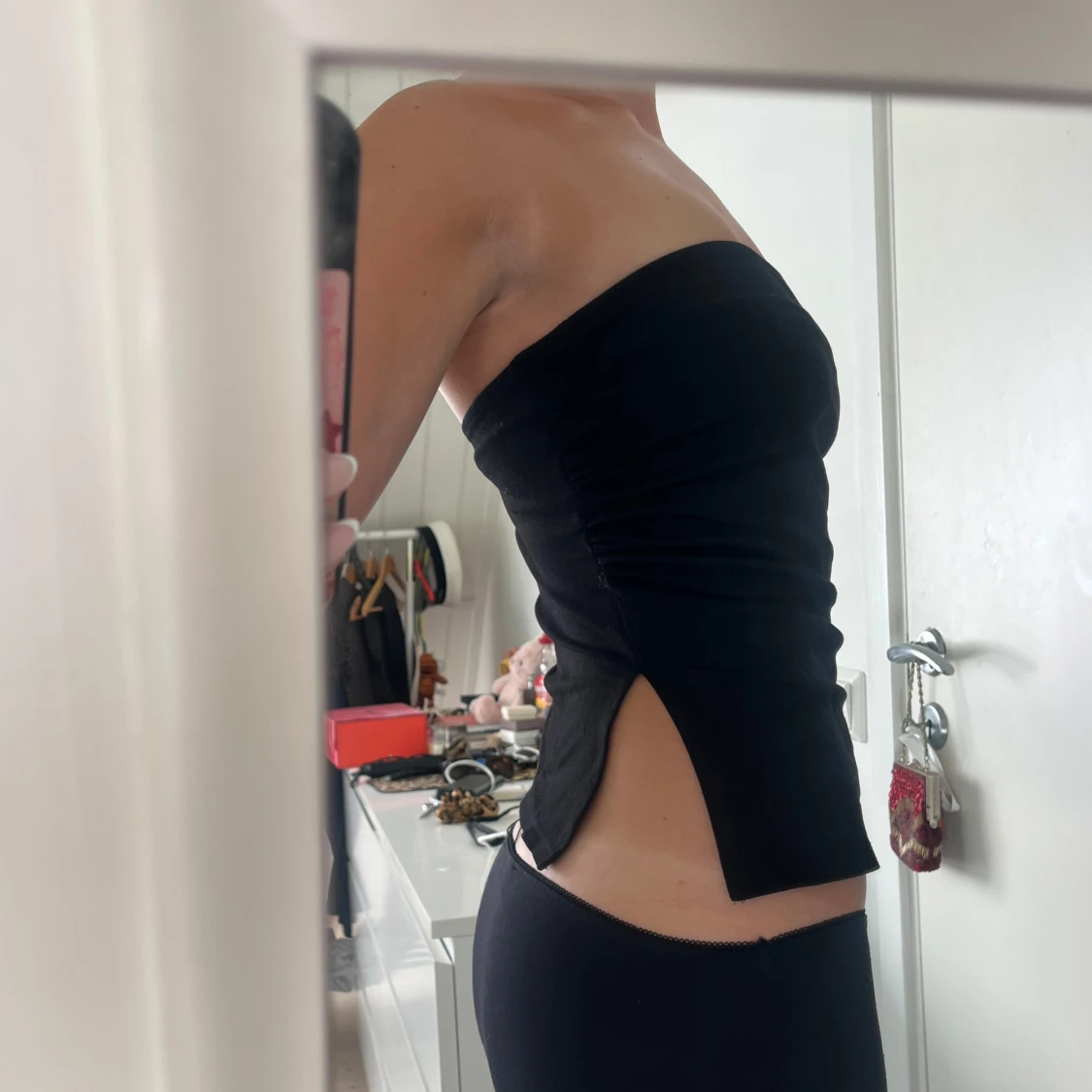 Svart bandeau tubtopp med slits