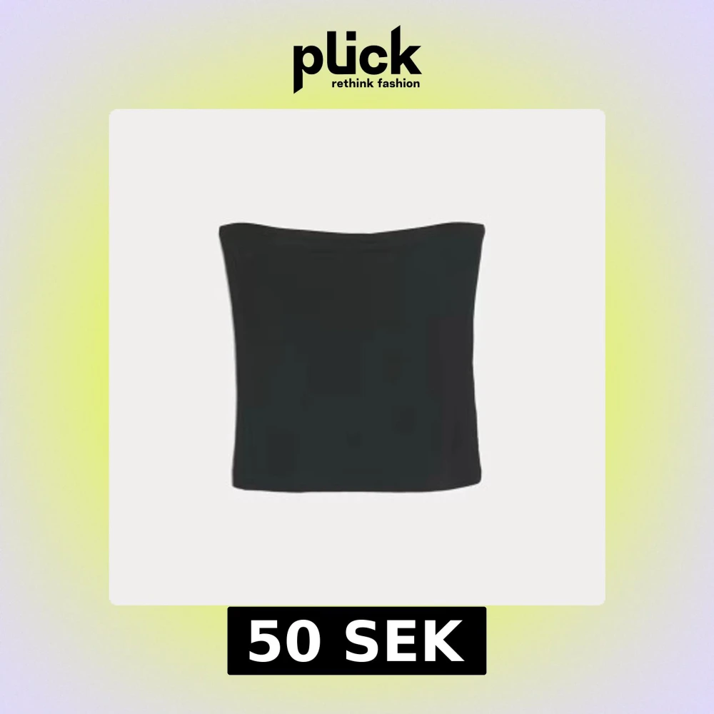 En svart tubetopp från Cubus i storlek XS. Toppen är axelbandslös och har en enkel, tight passform som sitter snyggt på kroppen. Perfekt att matcha med jeans eller kjol för en clean look. Aldrig använd bara testad. Helt slutsåld på hemsidan.