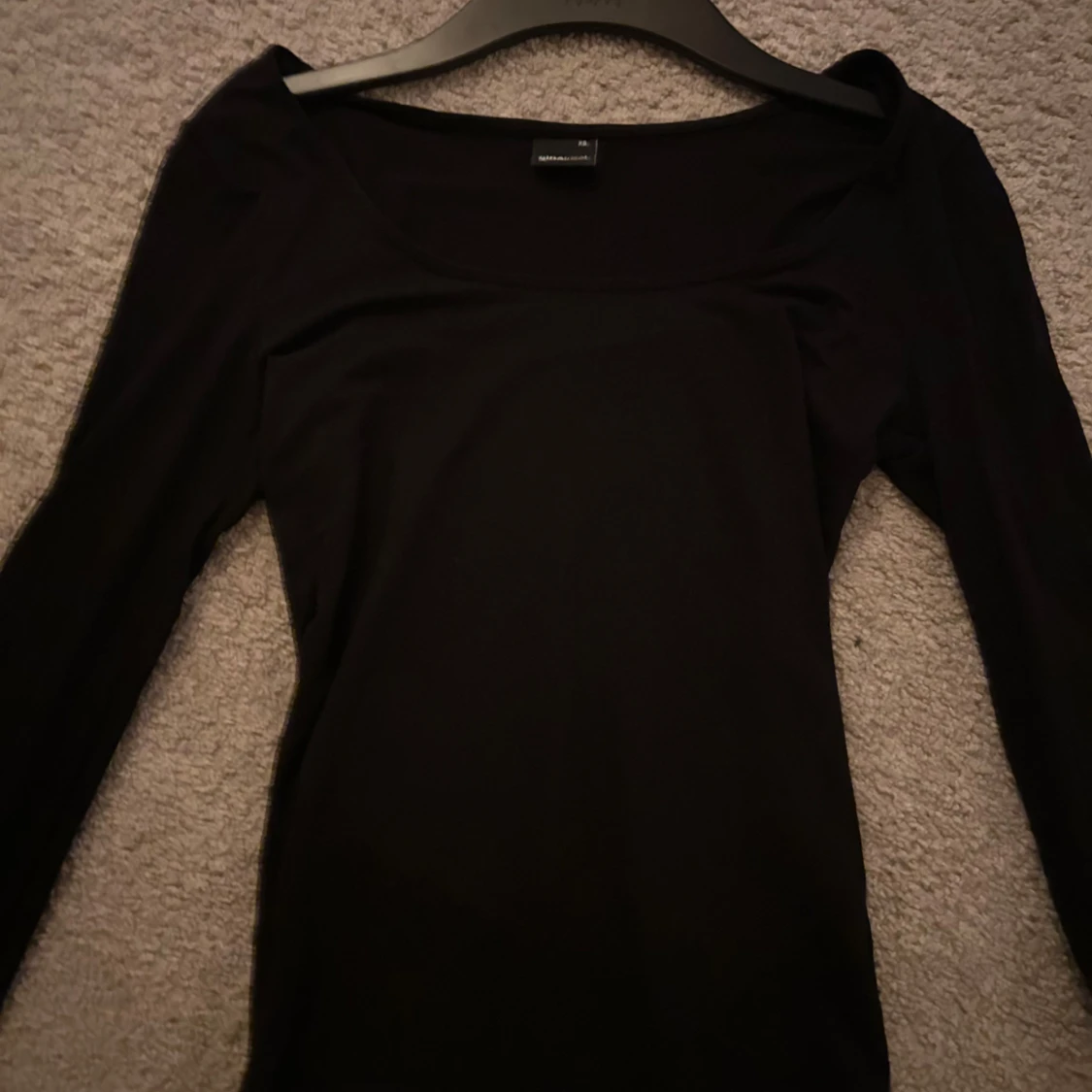 Säljer en stilren svart långärmad topp från Gina Tricot. Toppen har en klassisk design och är tillverkad i ett mjukt material.