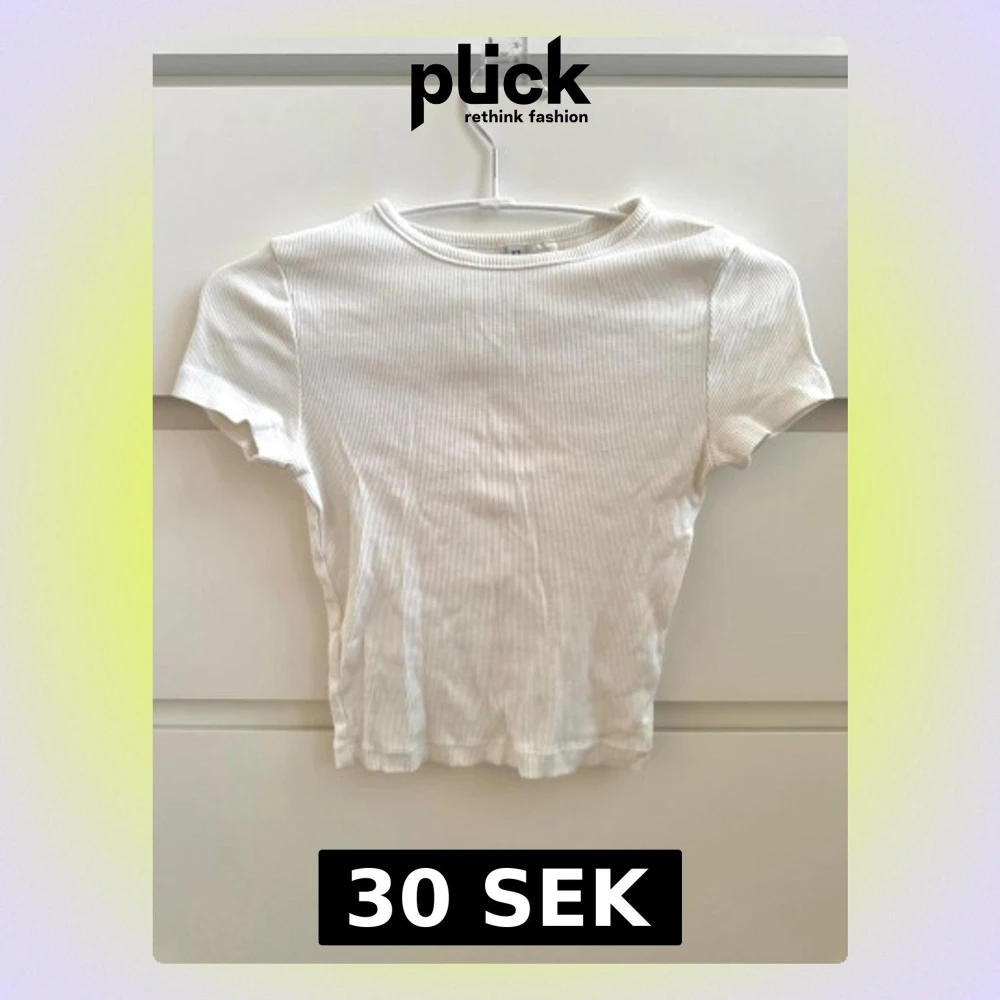 Säljer en enkel och stilren vit croppad topp med ribbad struktur från H&M. Toppen har korta ärmar och rund halsringning, perfekt för att matcha med jeans eller kjol. Materialet känns mjukt och stretchigt, vilket gör den bekväm att bära hela dagen 🥹