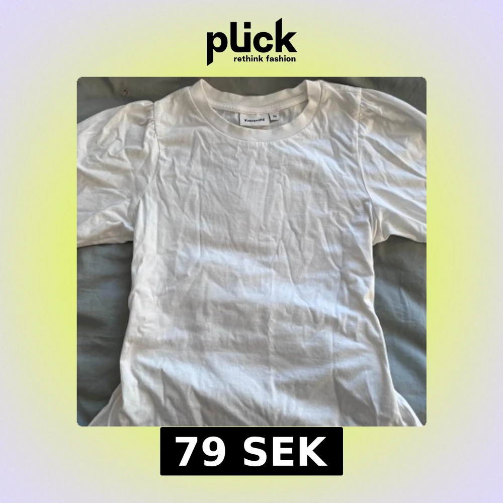 Säljer en klassisk vit t-shirt från Kappahl i storlek xs. T-shirten har korta ärmar och en rund halsringning. Perfekt basplagg för alla tillfällen. Lite puffärm HELT NY❤️