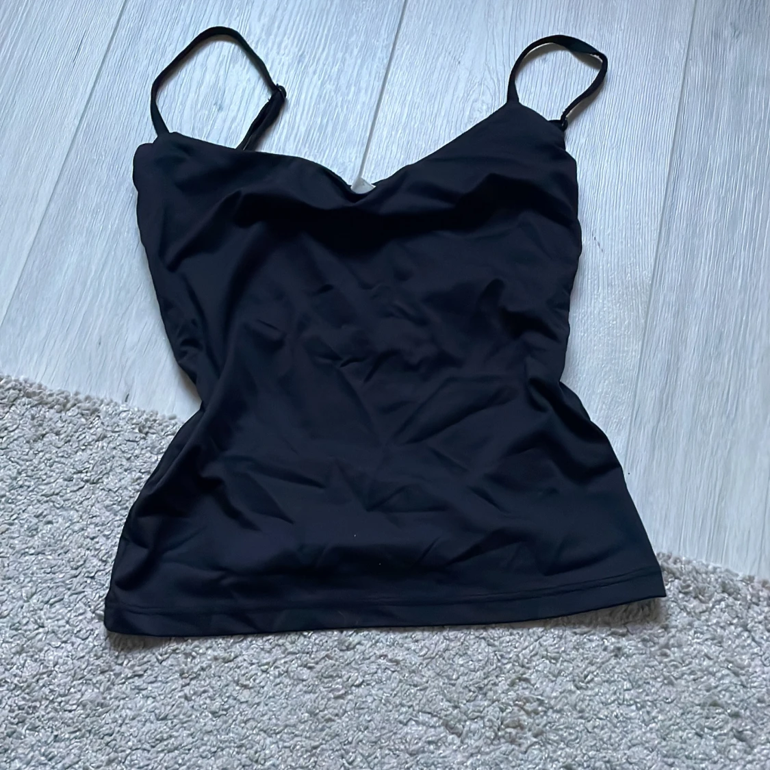 Säljer en stilren svart linnetopp från Gina Tricot. Toppen har smala axelband och en enkel design som passar perfekt till olika outfits. Perfekt basplagg för garderoben!