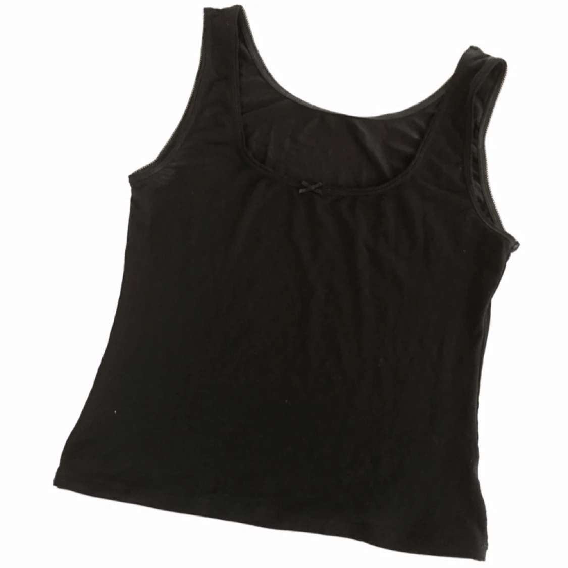 Svart linne som är något kortare. Liten rosett framtill. Perfekt basplagg, mycket bra skick.