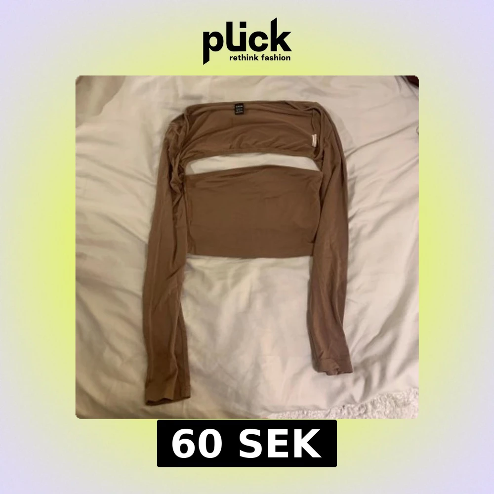 Säljer en beige topp med tillhörande del med långa ärmar. Perfekt för en stilren och modern look. Aldrig använd