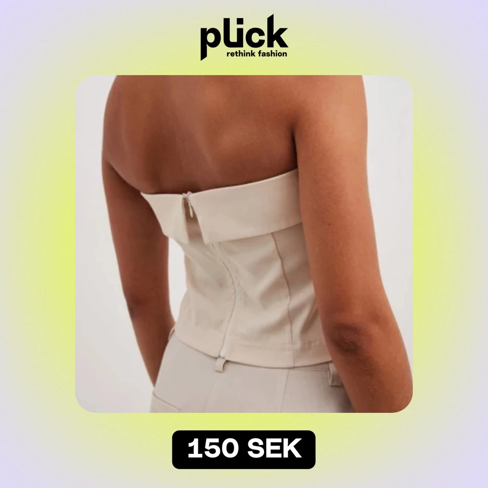 Säljer en superfin beige axelbandslös topp som är perfekt för sommaren. Den har en dragkedja i ryggen och en stilren design som passar både till vardags och fest.