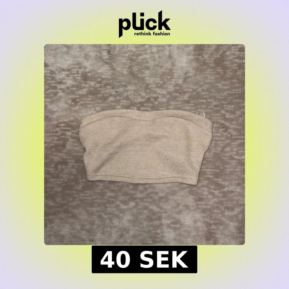 Snygg beige bandeau tubtopp i mjukt stickat material. Den är väldigt kort och stretchig. Toppen har använts en gång.