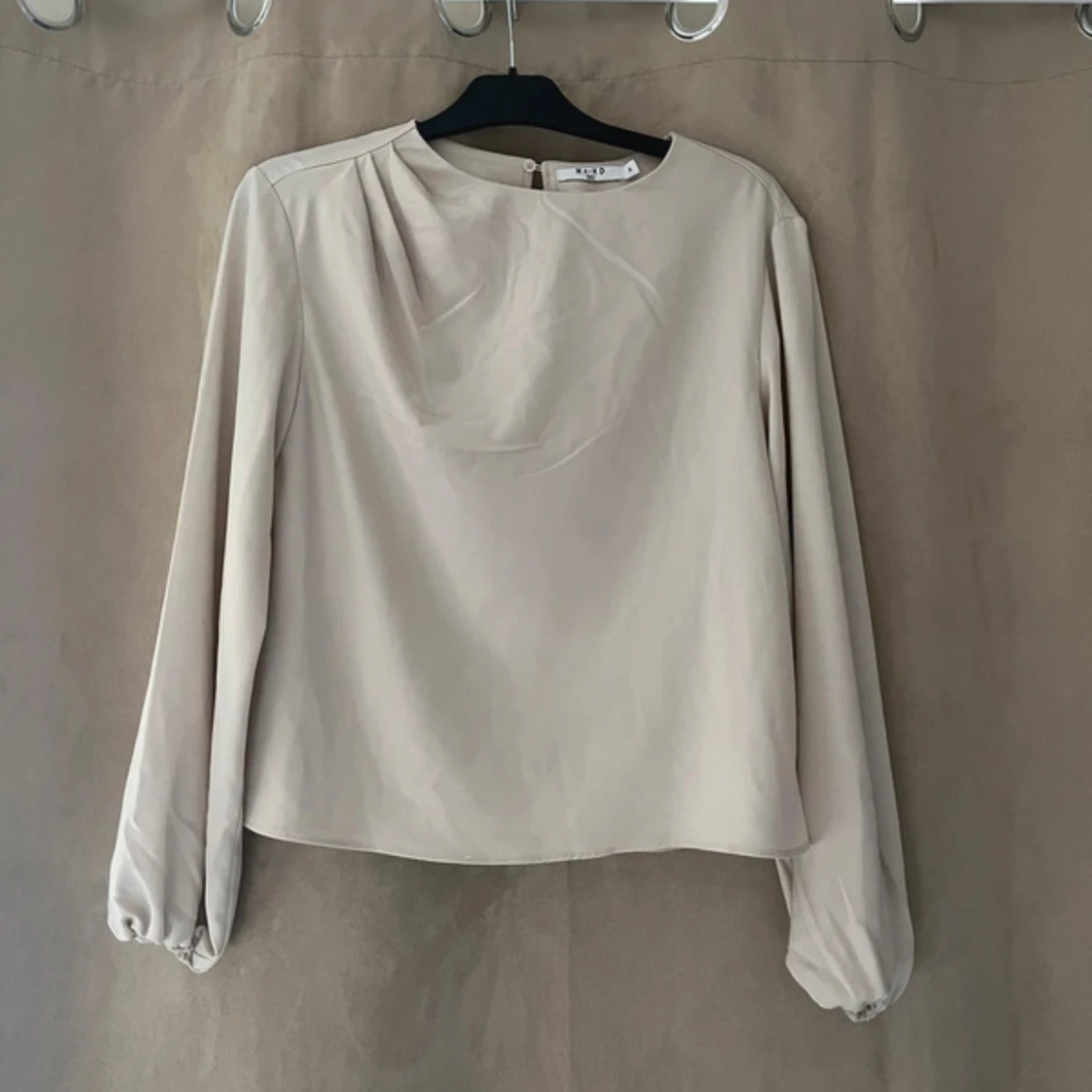 Elegant beige blus från Zara med långa ärmar och rund hals. Helt oanvänd!