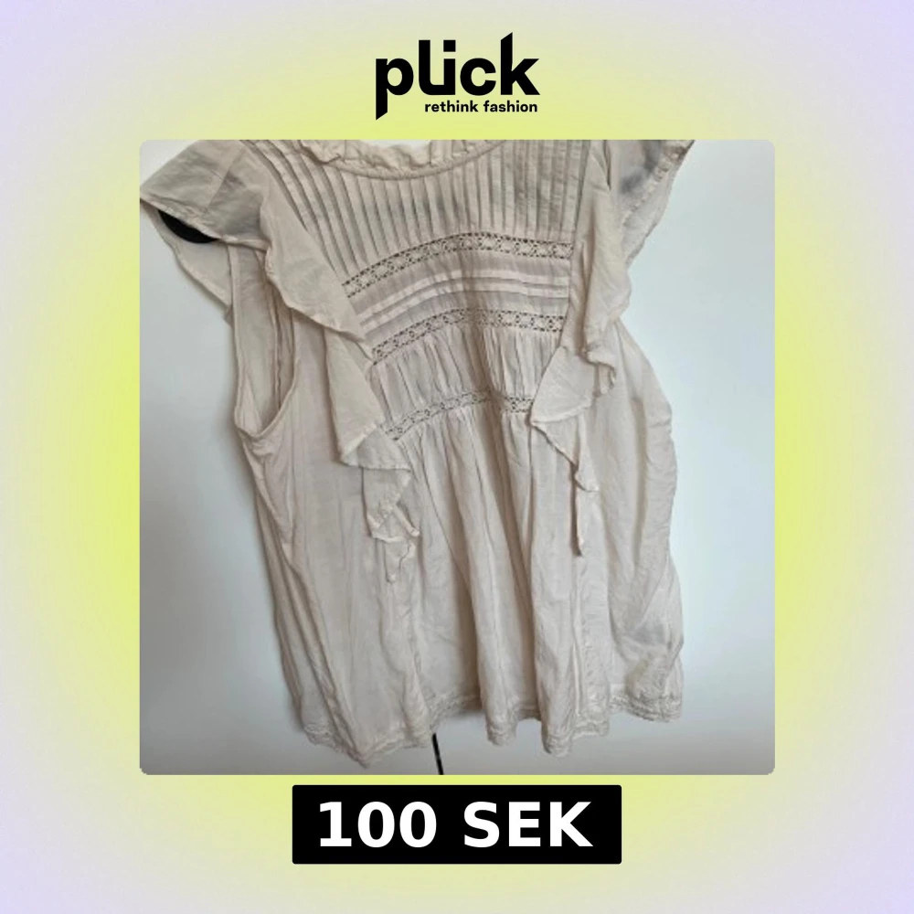Supersöt beige blus från Holly & Whyte med volanger längs axlarna och framstycket. Blusen har broderade spetsdetaljer och tunna vertikala sömmar upptill. Luftig och lätt i bomull, perfekt för ljusa dagar.
