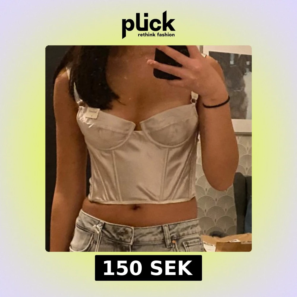 Beige/champagnefärgad korsettopp i satin. Har knäppen där bak att spänna med. (Prislappen klippte jag tyvärr av efter bilden)