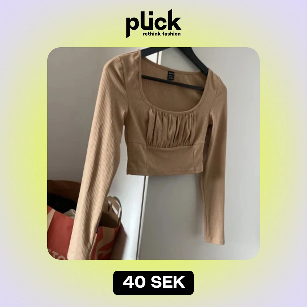 Säljer denna topp från shein med räfflad detalj vid bröstet. Det är en väldigt söt tröja men jag gillar inte riktigt att den är så kort så därför säljer jag denna.