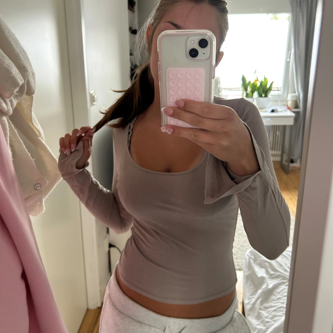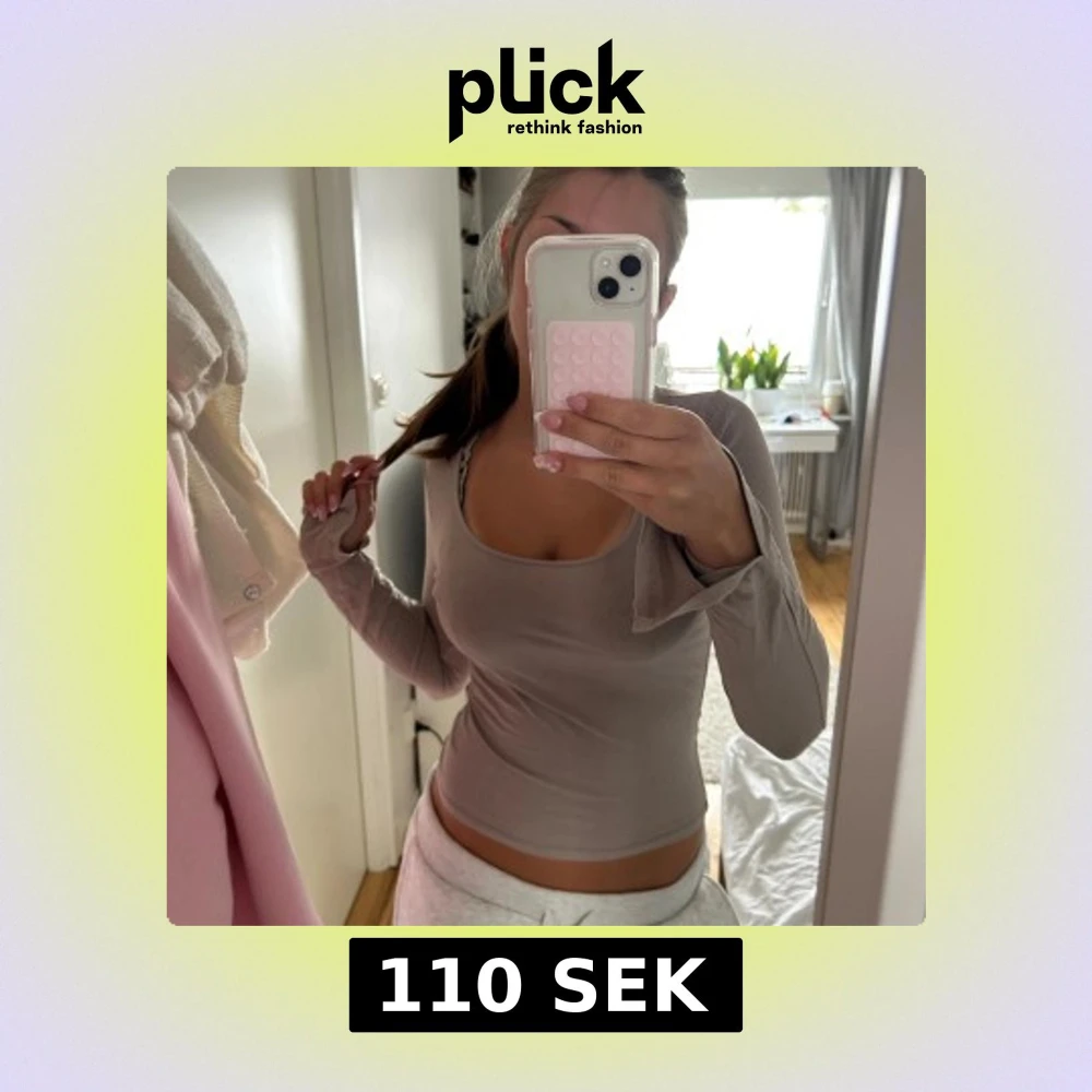 Säljer en beige långärmad topp från Gina Tricot i storlek S. Toppen har en tight passform, rundad ringning och är tillverkad i mjukt, stretchigt material. Tröjan är använd ett fåtal gånger och är i ett fint skick!
