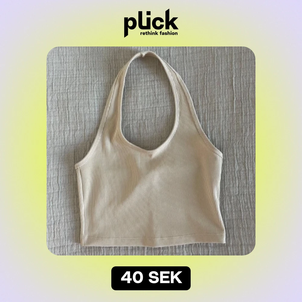 Beige halterneck topp från H&M, storlek M men passar S också. Jättefint skick, oanvänd! Passar till vardags, fest, träning, allt 😍