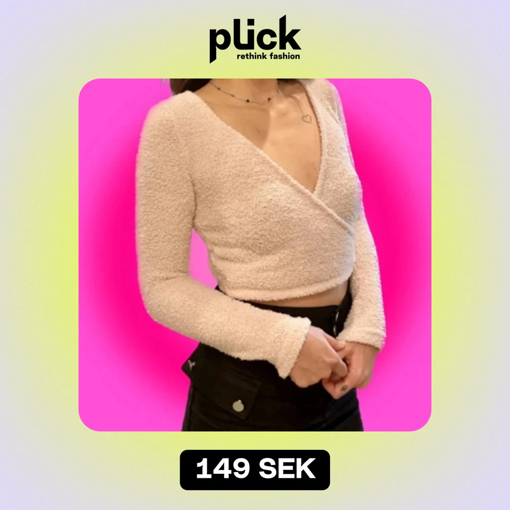 Säljer en superfin babyrosa omlottopp som är croppad och har en mysig, fluffig textur. Den har långa ärmar och en djup v-ringning, perfekt för både vardag och fest. Toppen är i ett mjukt material som känns skönt mot huden.