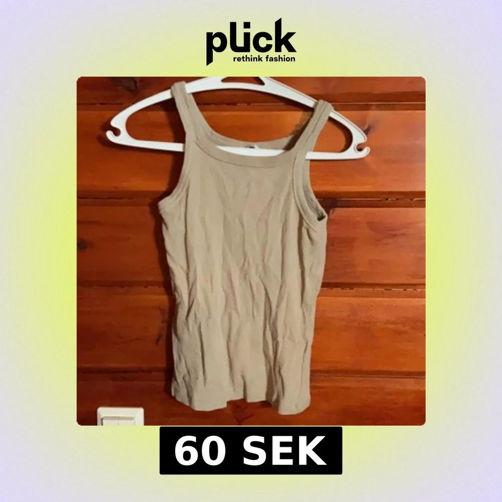 Säljer en beige topp från H&M i storlek S. Toppen har breda axelband och ärmlös design, perfekt för varma dagar. Enkel och stilren modell som är lätt att matcha med olika outfits.