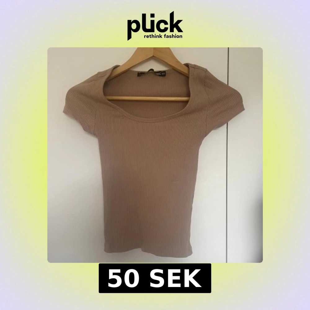En enkel och stilren beige ribbad topp. Toppen har korta ärmar, rundad halsringning och är figurnära i modellen. Perfekt att matcha med jeans eller kjol för en clean look.