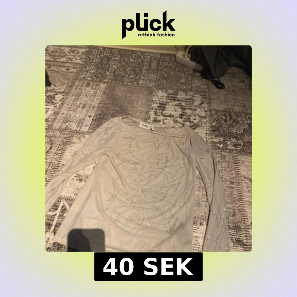 Snygg beige långärmad topp från Weekday med glittriga detaljer. Perfekt för att lägga till lite bling i din outfit. Toppen har en normal passform och är tillverkad i ett mjukt material.