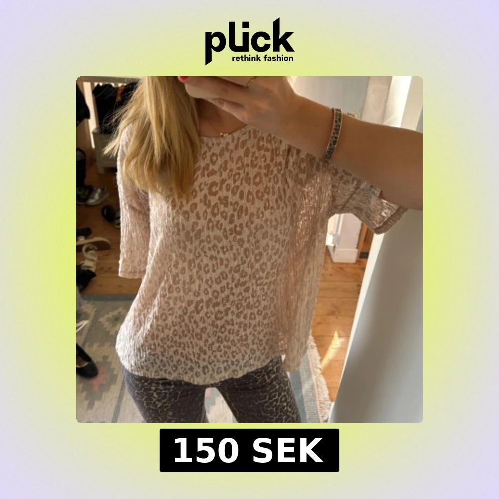 Säljer en beige, kortärmad topp från LinDEX med leopardmönster. Den är ganska genomskinlig och sitter löst då den är i storlek L!🧡