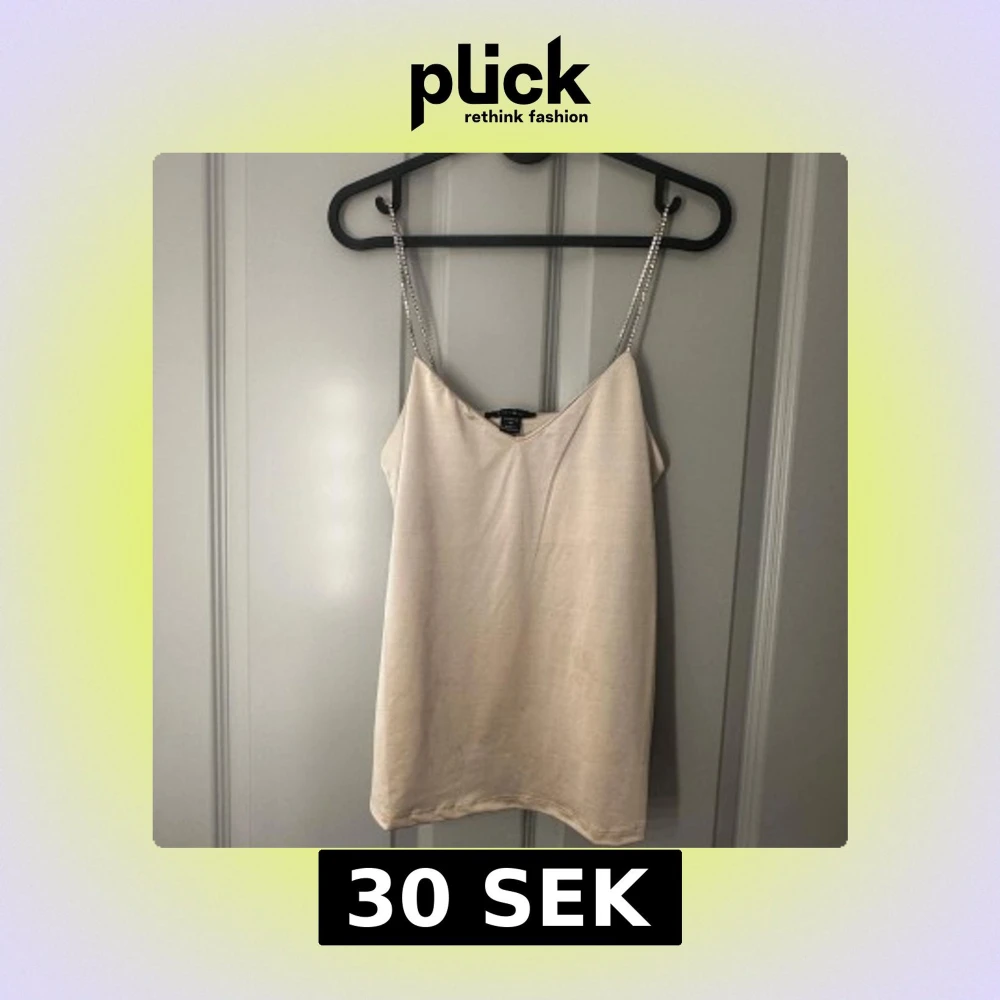 Snygg beige linnetopp med glittriga kedjeband som axelband.Toppen har en enkel och stilren design som passar till många olika outfits.