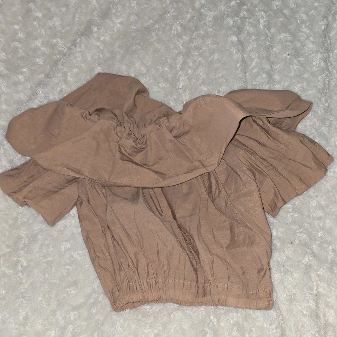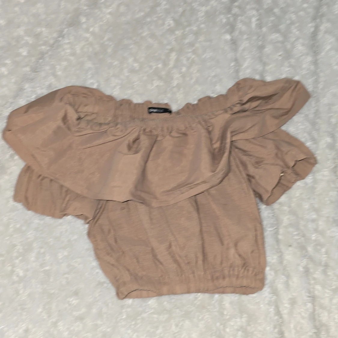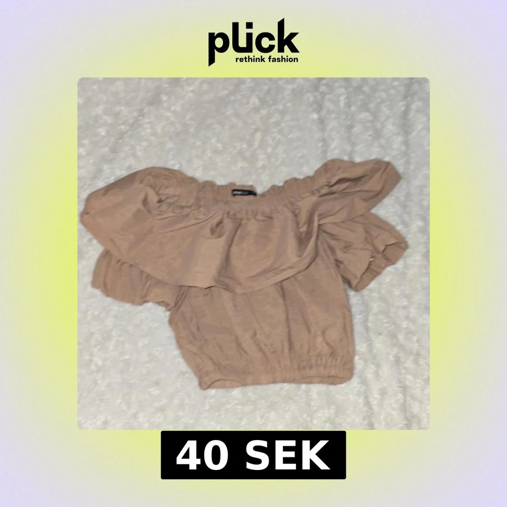 Säljer en söt beige offshoulder topp från Gina Tricot. Toppen har volangdetaljer och elastiska kanter för en bekväm passform. Perfekt för en somrig look!💞💗