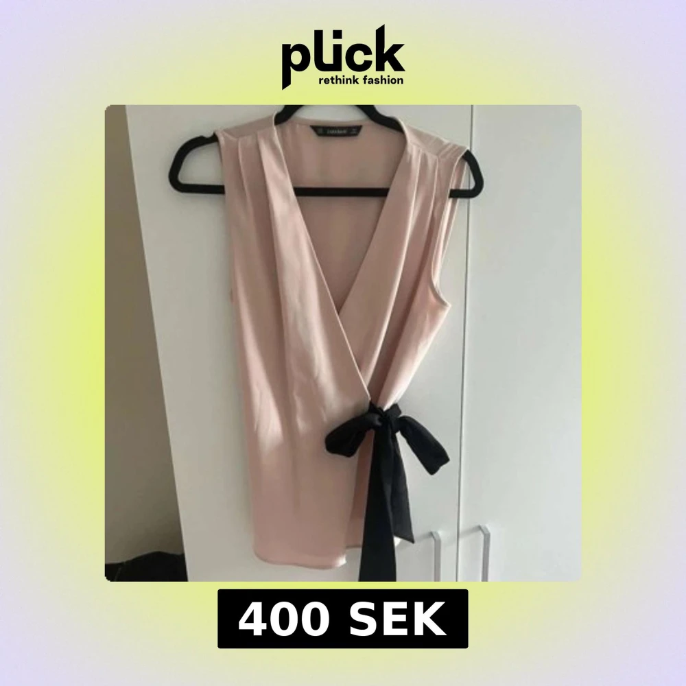 Snygg beige omlottopp från Zara Basic med en svart knytning i midjan. Toppen är ärmlös och har en djup v-ringning som ger en elegant touch. Perfekt för att klä upp eller ner beroende på tillfälle.