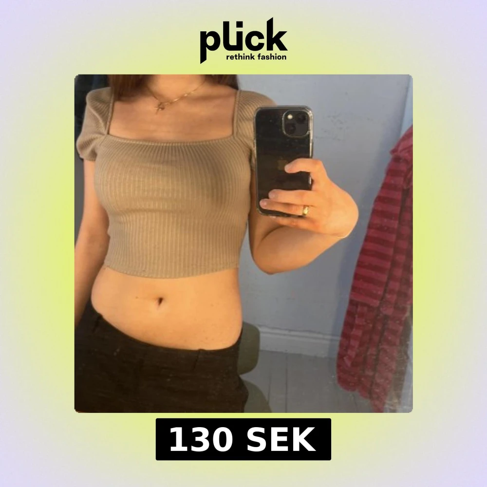 Säljer en beige ribbad croppad topp med puff ärmar. Toppen har en fyrkantig halsringning och är perfekt för en trendig look. Den är både bekväm och stilren. Använd fåtal gånger💕