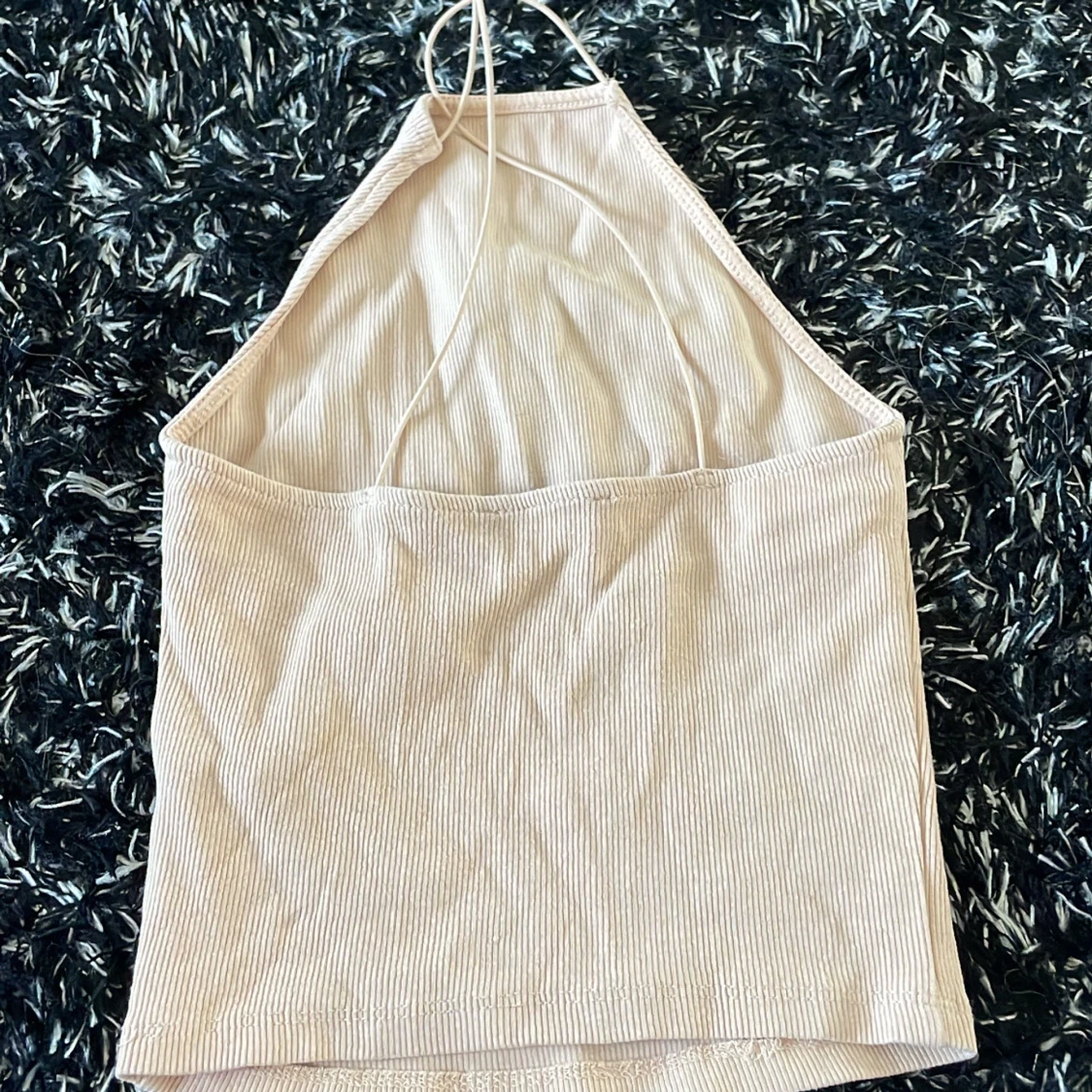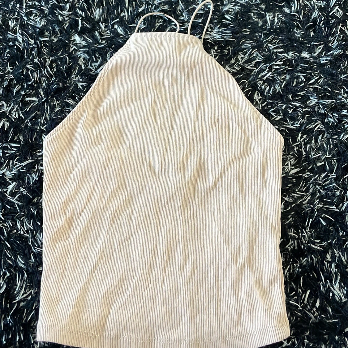 Säljer en beige ribbad halterneck topp från Zara i storlek S. Som ny💗