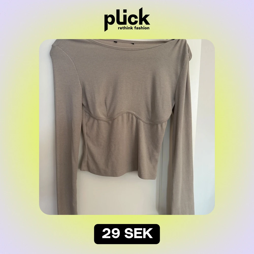 Säljer en superfin beige ribbad topp med långa ärmar. Den har en snygg passform och är perfekt för både vardag och fest. Toppen är i mycket bra skick och passar perfekt till höstgarderoben.