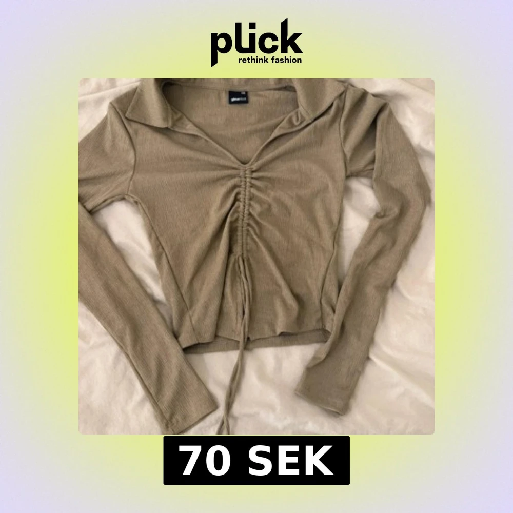 Trendig beige långärmad topp med ribbad struktur och snygg snörning framtill, aldrig använd. Djup v-ringning med krage och croppad passform. Perfekt för att lyfta din outfit med en cool detalj framtill.