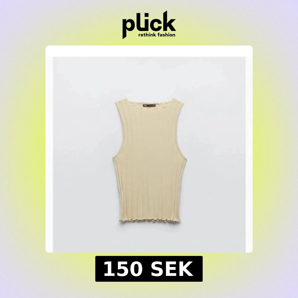 Snygg beige ribbad linnetopp med hög hals och ärmlös design. Perfekt för en stilren och enkel look. Passar bra till jeans eller kjol för en avslappnad stil. (Säljer en beige, den vita är bara för att visa modellen)