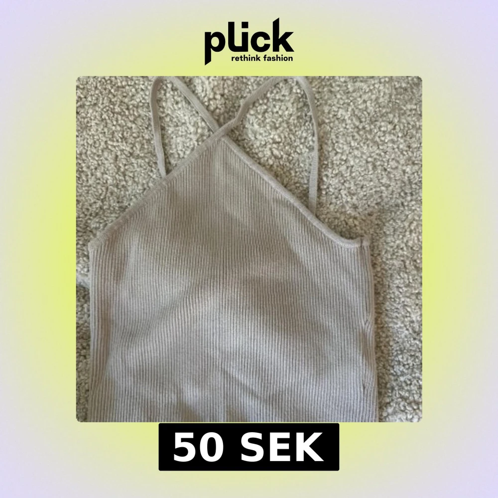 Säljer en beige ribbad linnetopp från H&M i storlek S. Toppen har smala axelband som korsas i ryggen och är tillverkad i ett mjukt material. Tar frakt!