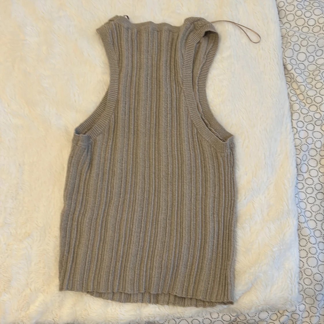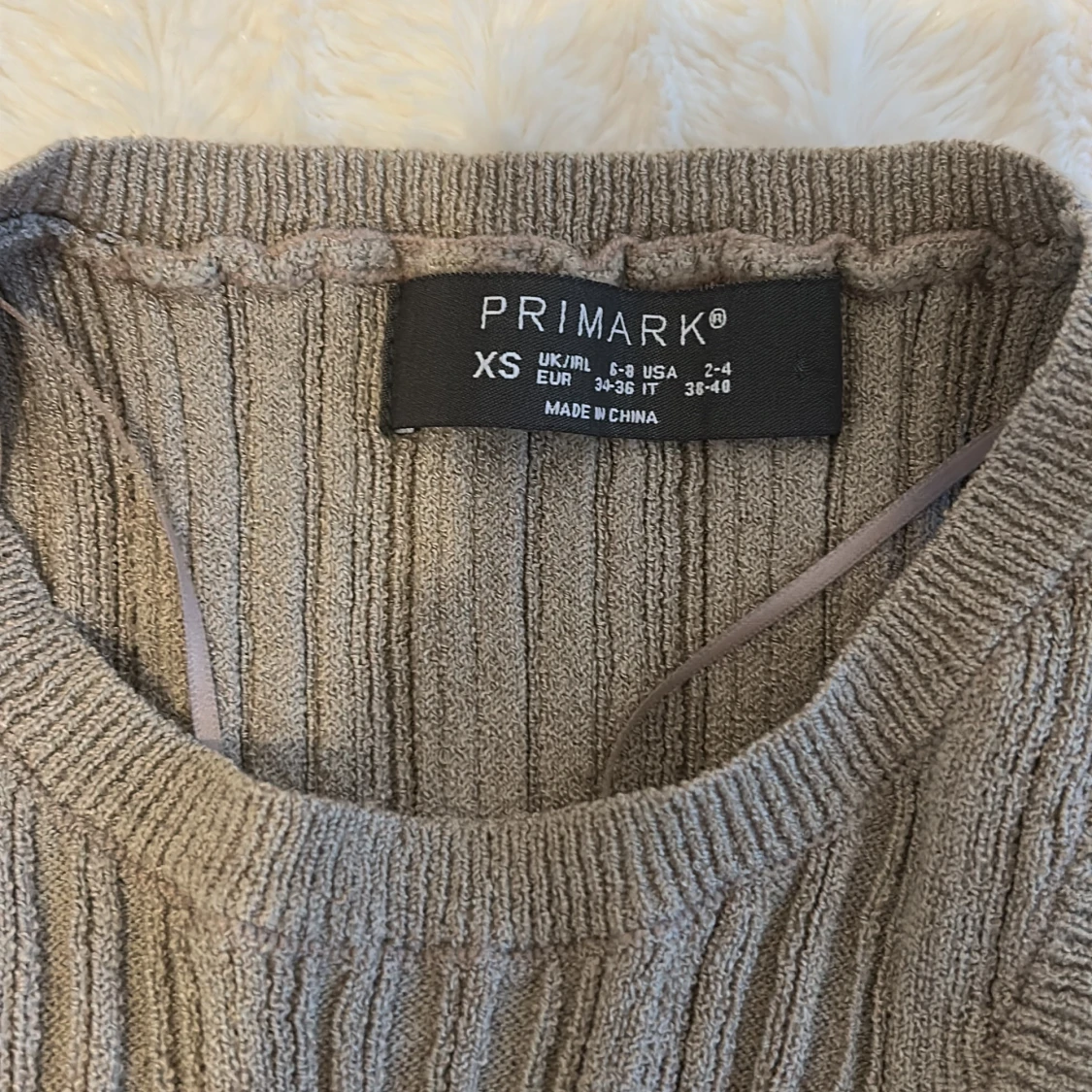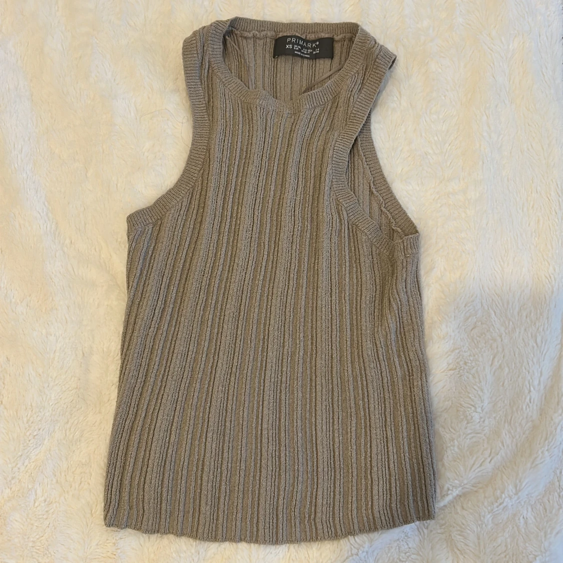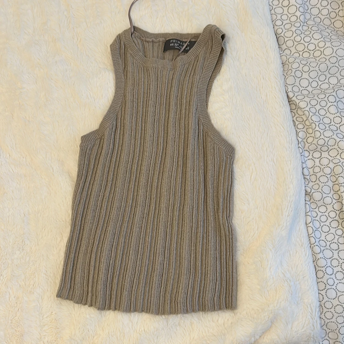 Säljer en beige ribbad linnetopp från Primark i storlek XS. Toppen är ärmlös med rund halsringning och har en snygg stickad struktur som ger en cool och avslappnad vibe. Perfekt att matcha med jeans eller kjol för en enkel men trendig look.