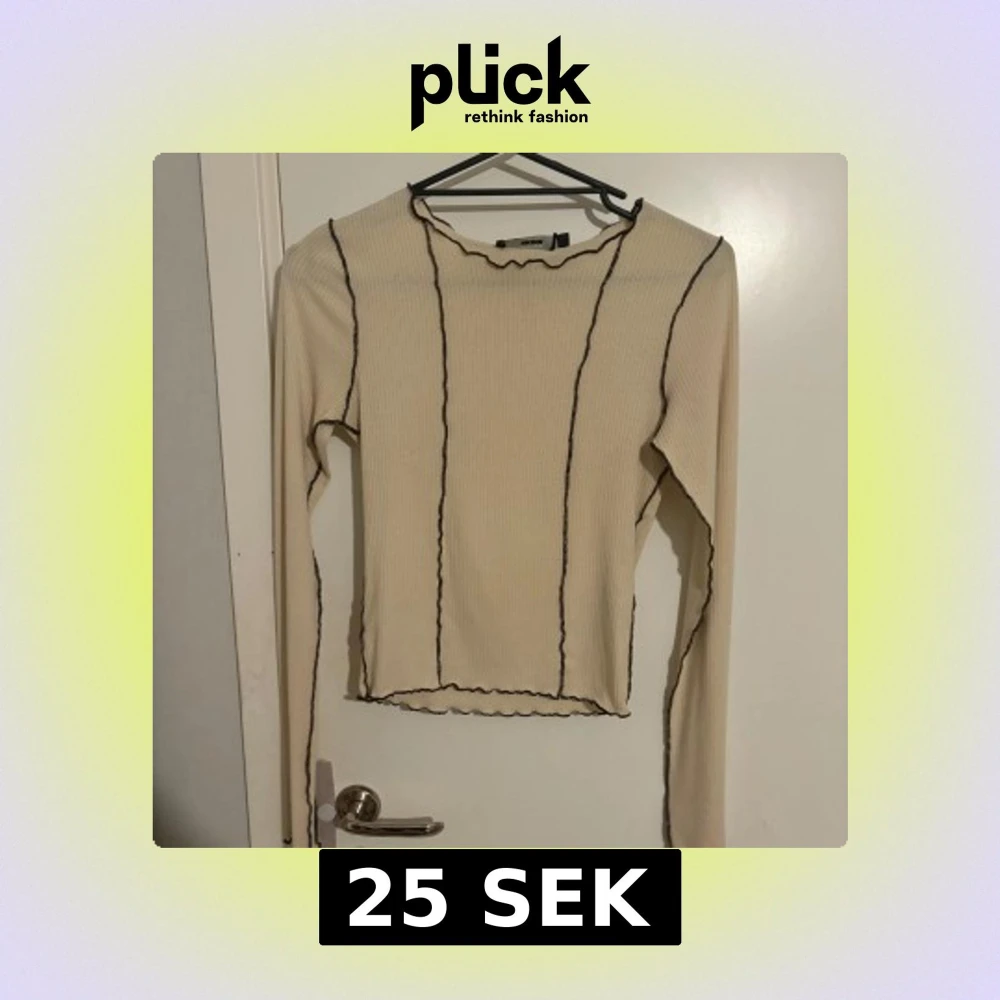 Snygg beige ribbad topp från Bikbok med brun/svarta kontrastsömmar. Använd fåtal gånger i storlek xs, men passar en S med! Ord pris 199, säljer för 20 kr!