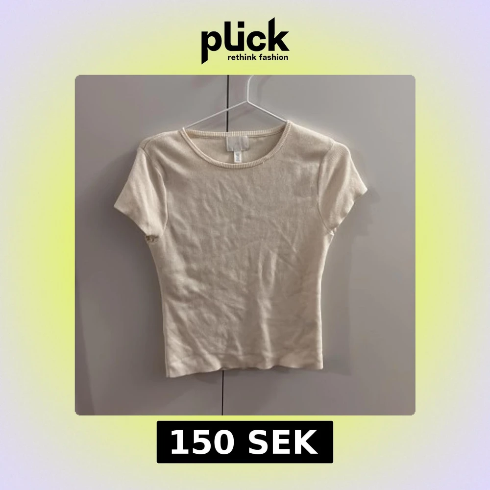 Säljer en beige ribbad topp från H&M i storlek M. Toppen har rund halsringning och korta ärmar, med en slim passform som sitter snyggt. Materialet är mjukt och stretchigt, perfekt för en clean och enkel look.