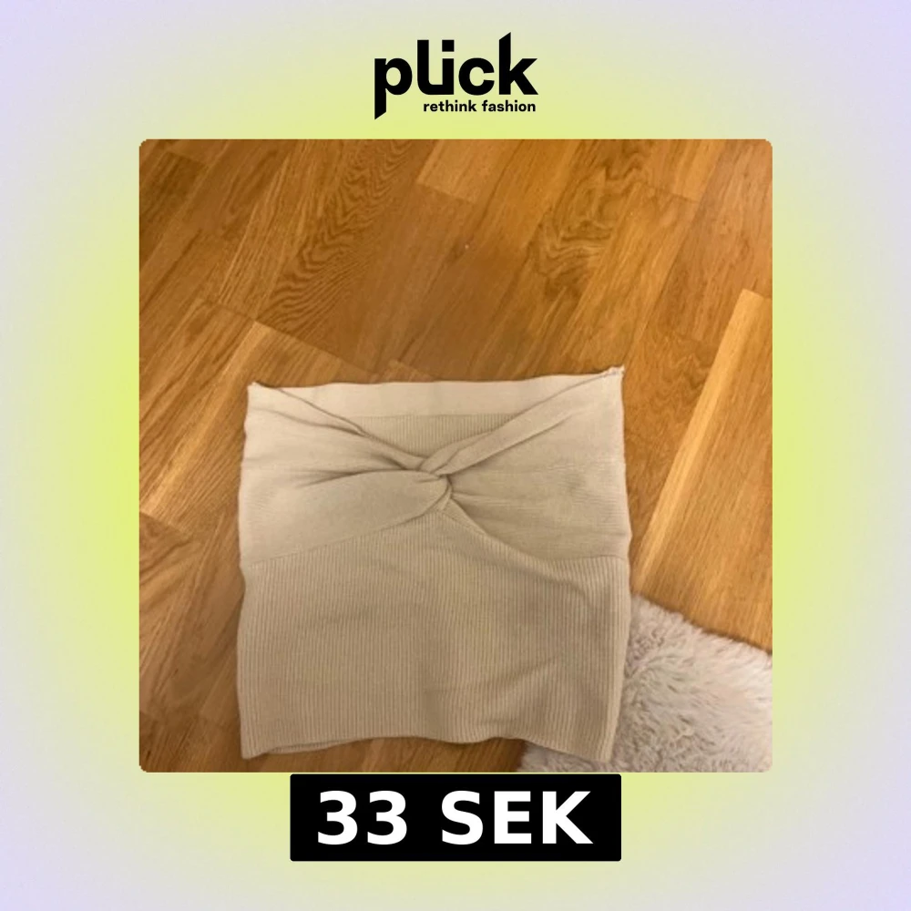 Säljer en snygg beige ribbad tubtopp med en twistdetalj framtill. Perfekt för att styla med olika outfits. Passar bra till både vardag och fest.