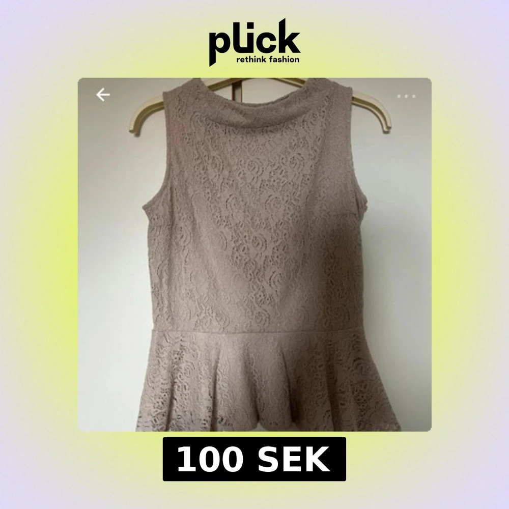 Supersöt beige blus från Lindex i storlek S. Toppen är ärmlös och har ett peplumliv med volang nertill. Hela toppen är täckt av vacker spets med blommönster och har en mjuk, feminin look. Perfekt att styla med jeans eller kjol för en chic vibe.