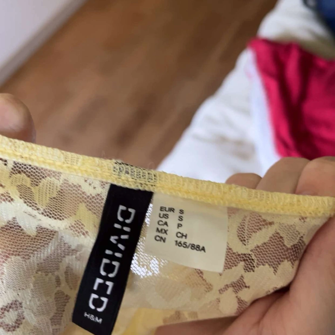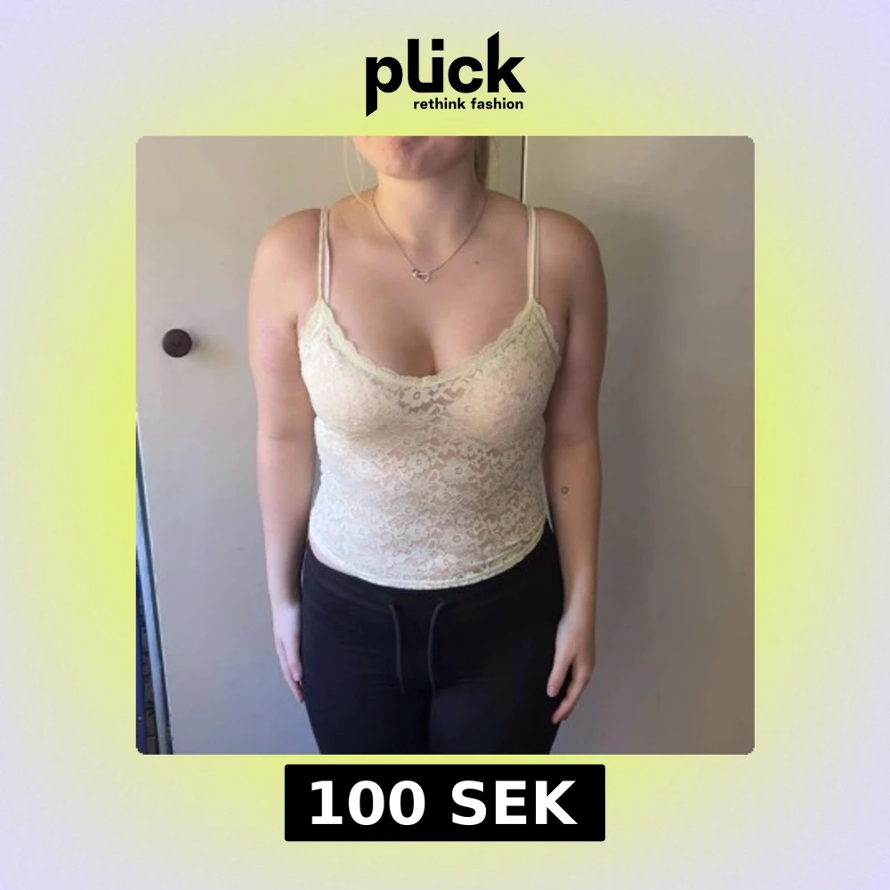 Säljer ett beige spetslinne från H&M Divided i storlek S. Linnet är ärmlöst med smala axelband och har ett blommigt spetsmönster över hela plagget. Perfekt för lager-på-lager eller som statement-piece till jeans eller kjol.