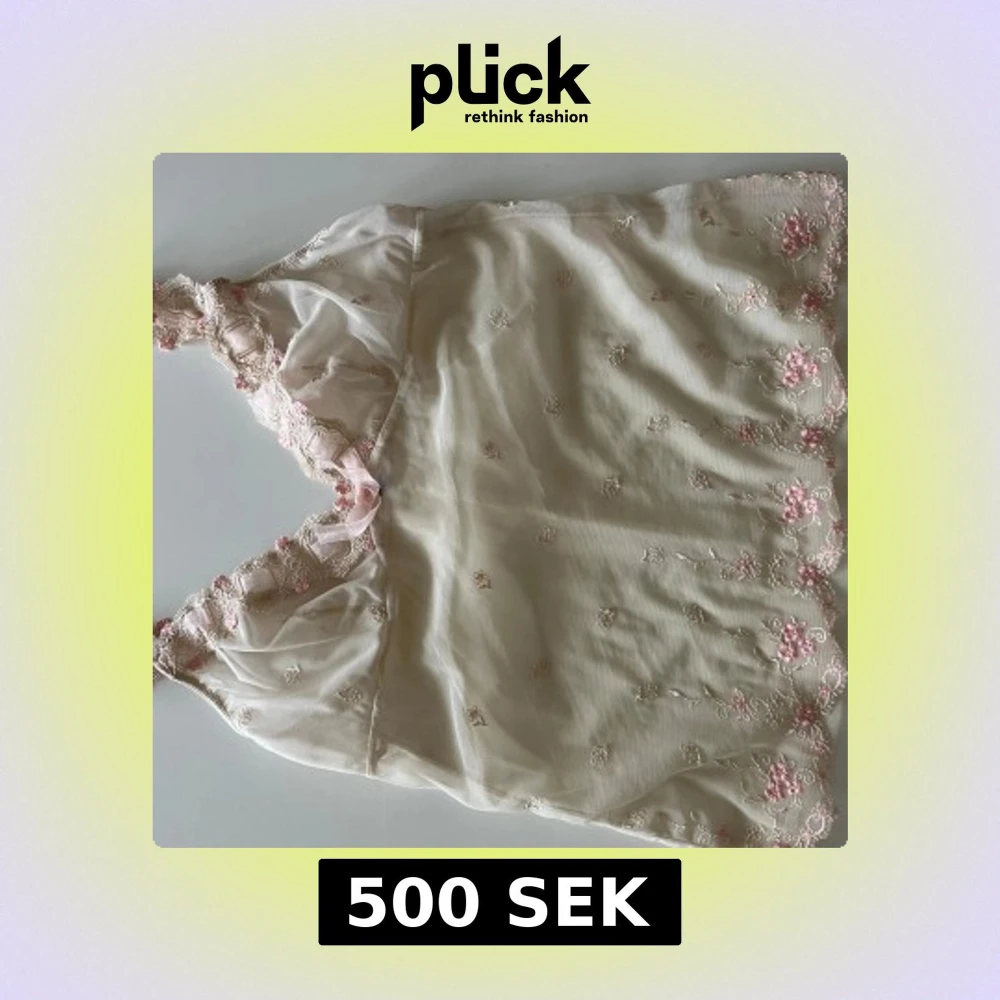 Säljer ett romantiskt beige linne med spetskant, små broderade blommor i rosa och en söt rosett framtill. Tunt och lätt material, perfekt för lager-på-lager eller som ett statement-plagg. I storlek s/m. Pris kan diskuteras💗