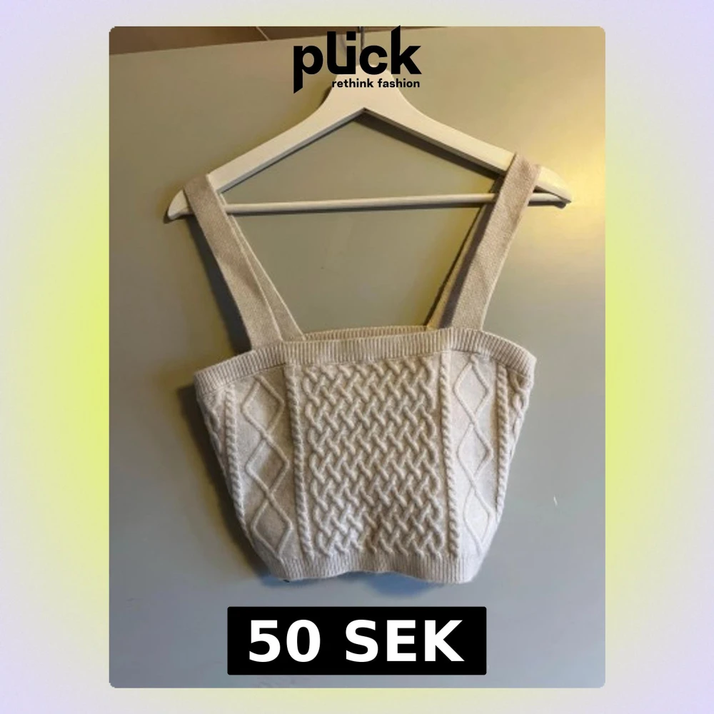Säljer en beige stickad linnetopp med breda axelband och snyggt flätmönster framtill. Toppen har ribbade kanter och är croppad i modellen, perfekt att styla med höga jeans eller kjol. Materialet är mjukt och ger en mysig känsla.