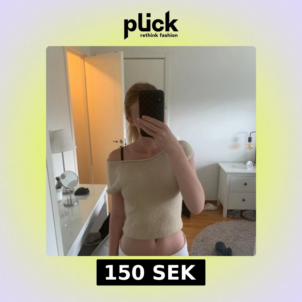 Säljer denna jättefina beiga stickade toppen. Den kan bäras på många olika sätt vid halsringningen då den är stretchig. Kanten nertill är avklippt då den var mycket längre förut men den går lätt att vika upp! Hör av vid frågor💛💛