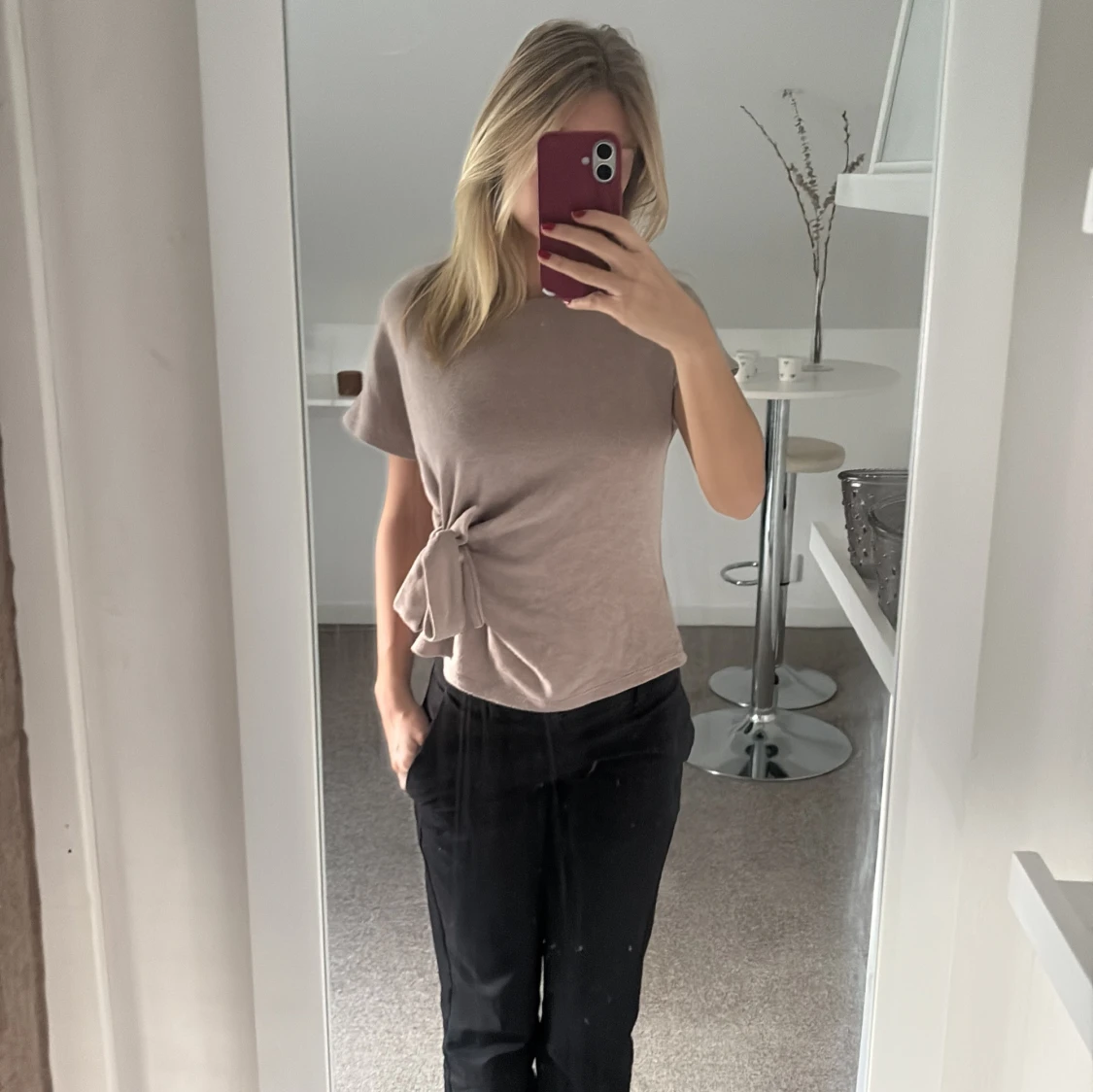 Säljer en beige topp från Zara, i storlek S💘tröjan är använd ett få antal gånger och är i mycket bra skick!